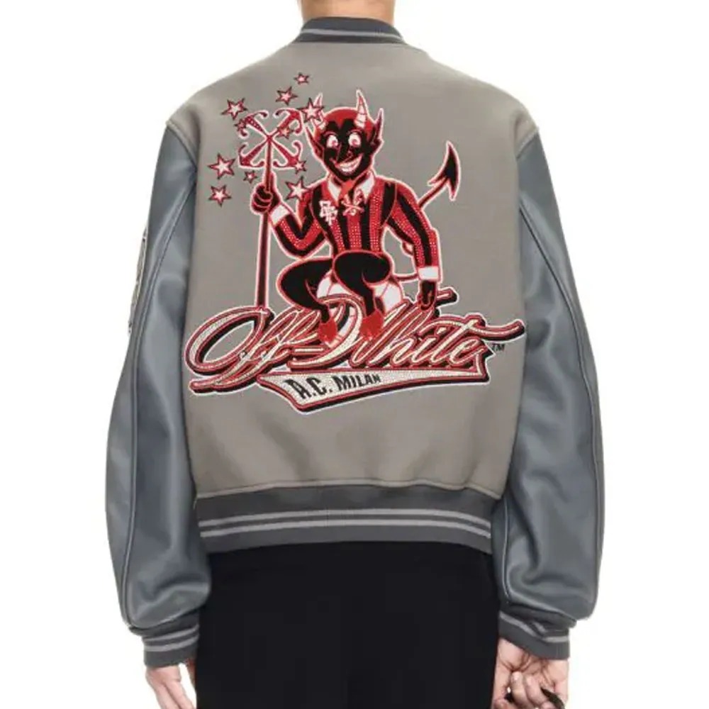 AC Milan Logo Off-White Gray Varsity Jacket