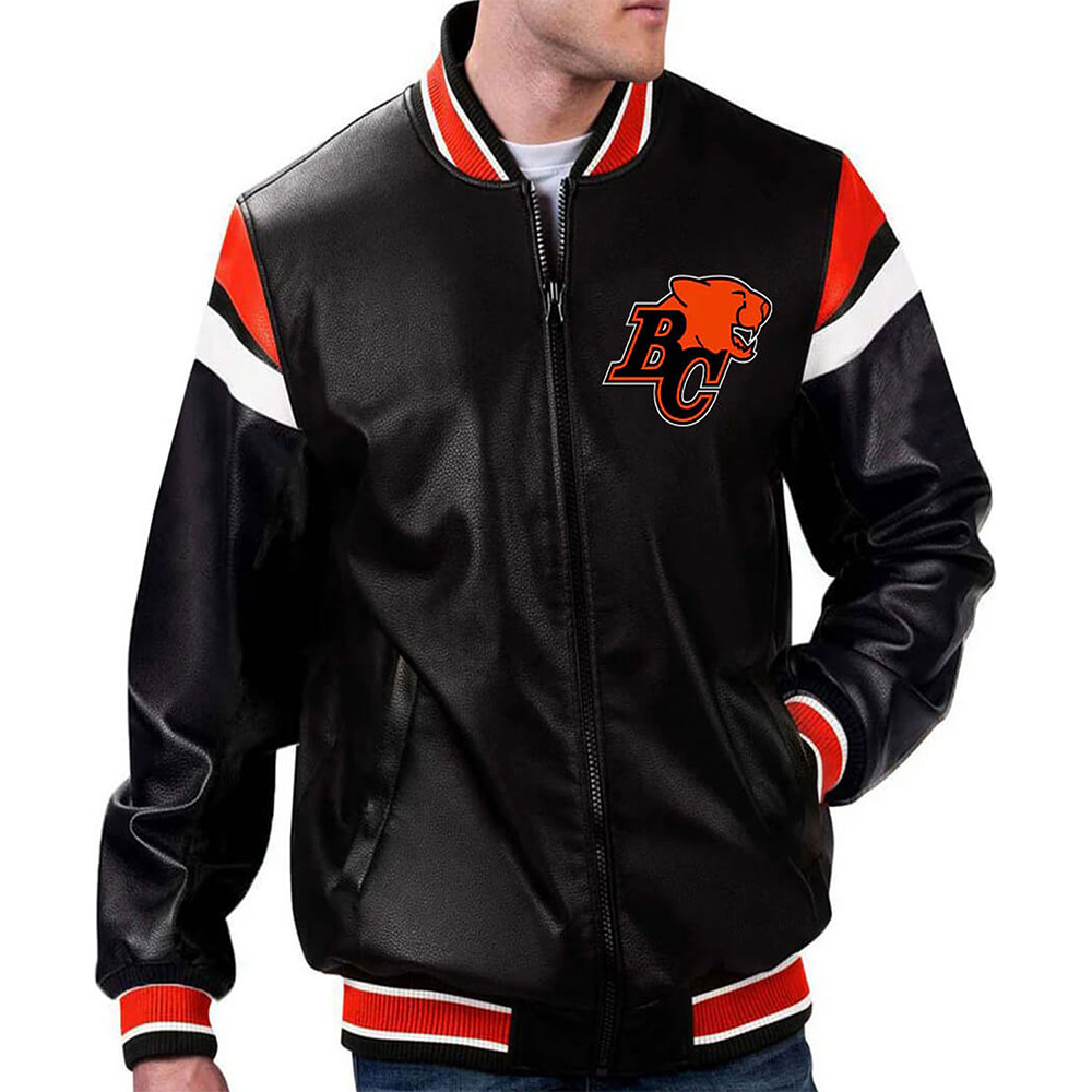 BC Lions Black Varsity Full-Zip Leather Jacket