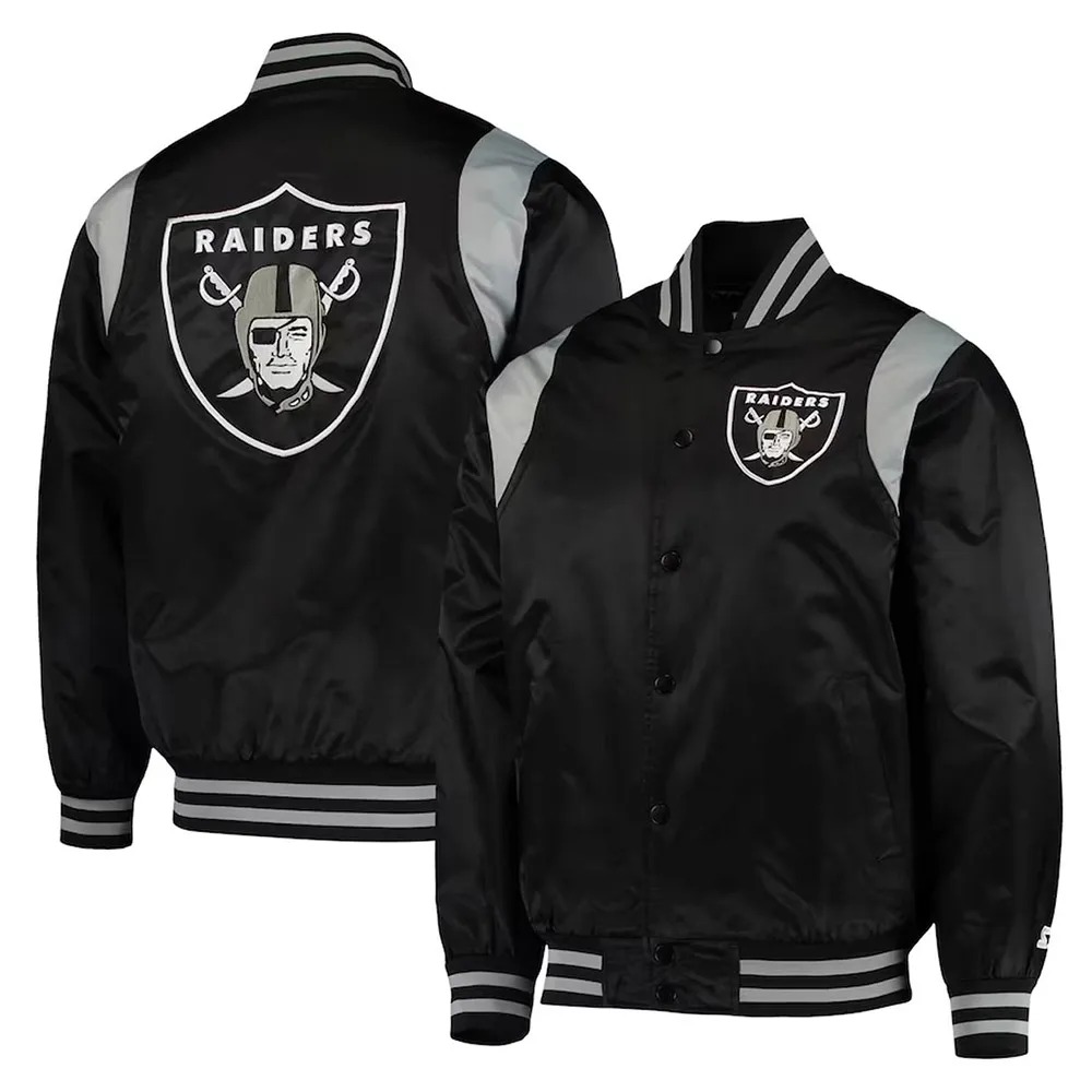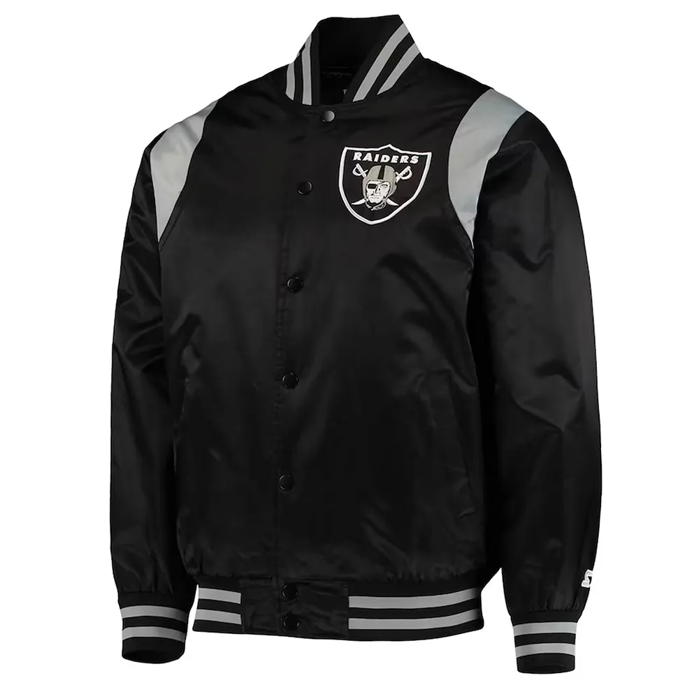 Black/Silver Las Vegas Raiders Prime Time Varsity Satin Jacket