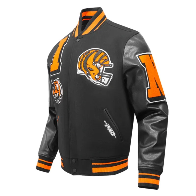The Cincinnati Bengals Mashup Rib Varsity Wool/Leather Jacket celebrates both fashion and fandom. Combining traditional varsity jacket design with premium wool and leather materials, it delivers a stylish, durable option for fans. Its unique mashup design pays homage to the history of the Bengals, making it a standout addition to any collection or game-day outfit.