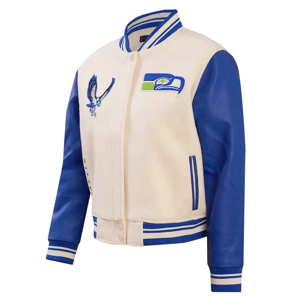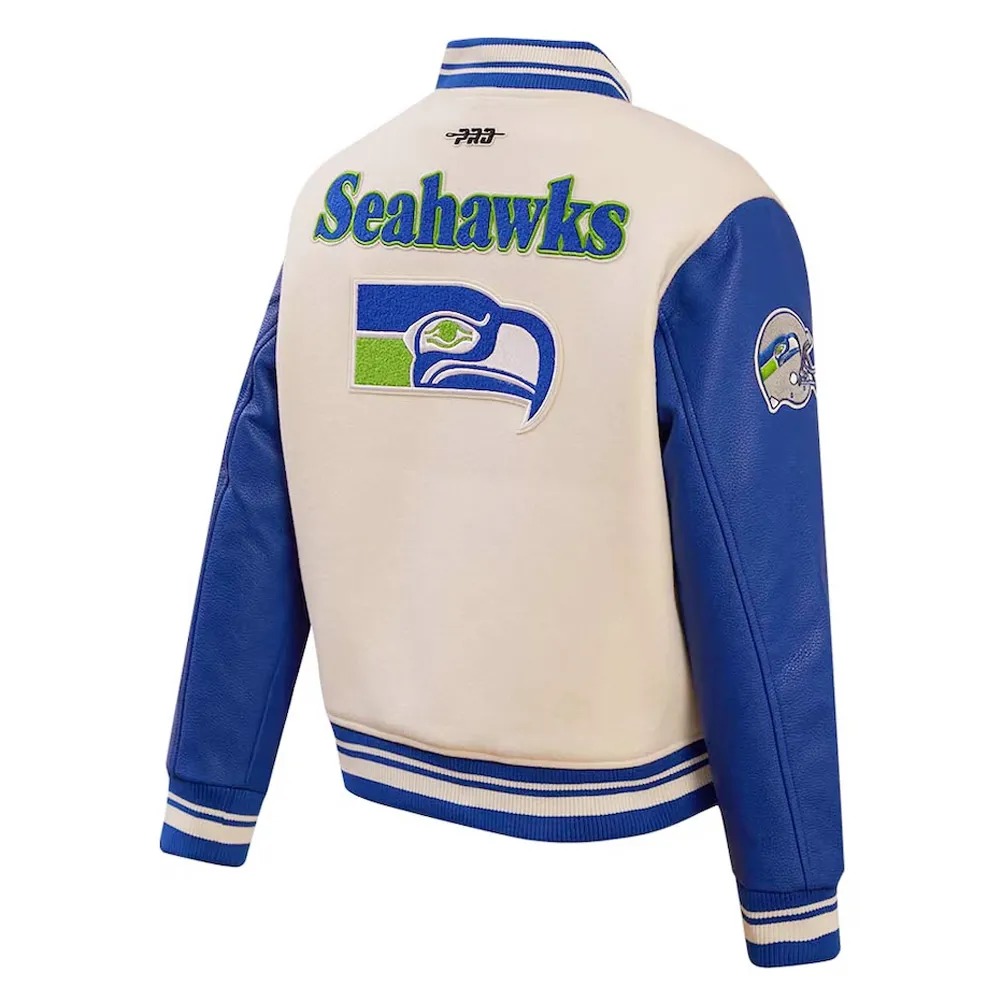 The Cream Seattle Seahawks Retro Classic Full-Zip Varsity Jacket embodies the spirit and tradition of the Seattle Seahawks. Celebrating decades of NFL excellence, memorable games, and fan loyalty, it reflects the pride and determination of the franchise. The Cream Seattle Seahawks Retro Classic Full-Zip Varsity Jacket connects fans, alumni, and collectors to the team’s enduring legacy, serving as a timeless symbol of Seattle football heritage, championship spirit, and the iconic history that defines one of the NFL’s most celebrated teams.