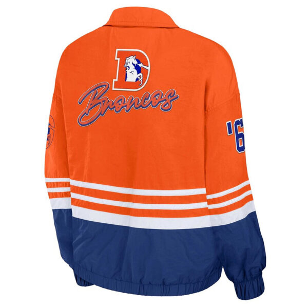 - Logo: Denver Broncos logo on the front, sleeve, and back