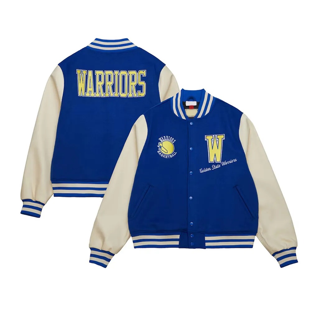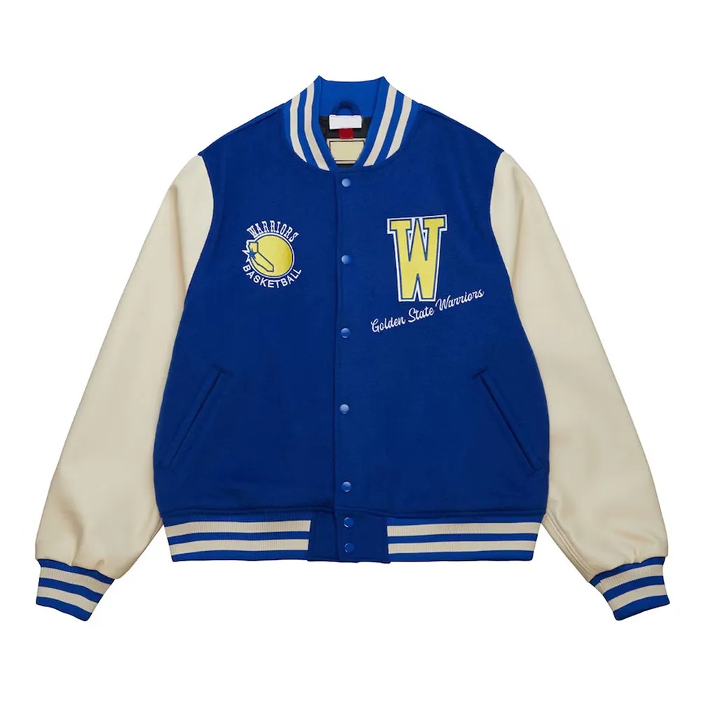 Golden State Warriors Classics Royal and Off White Varsity Jacket