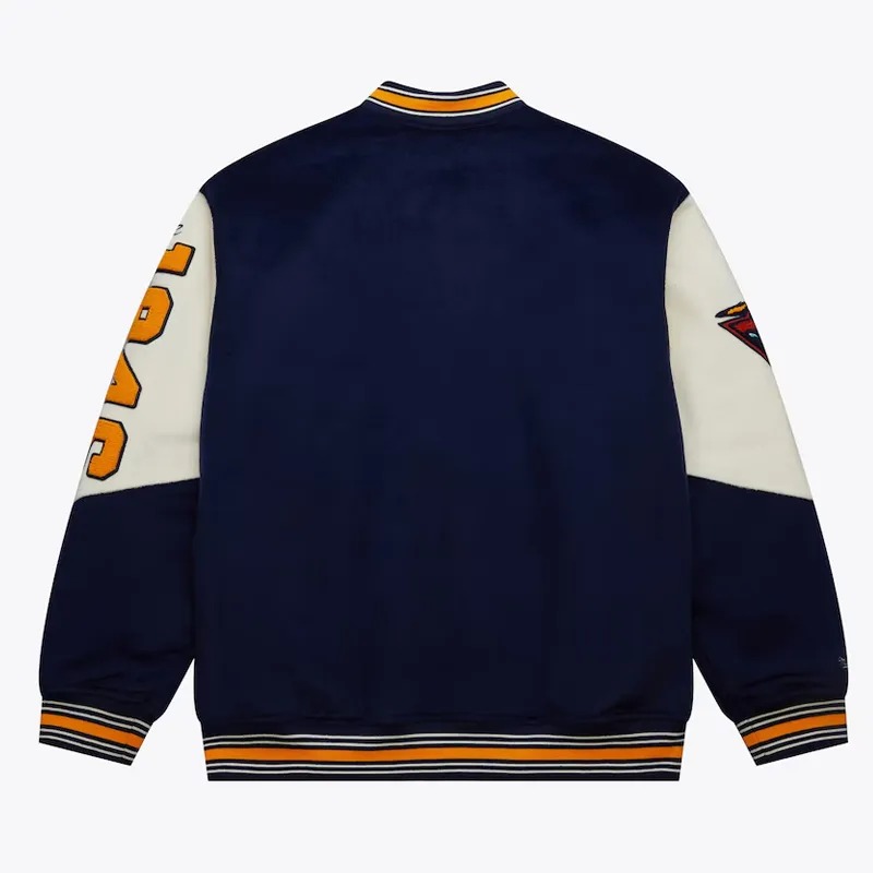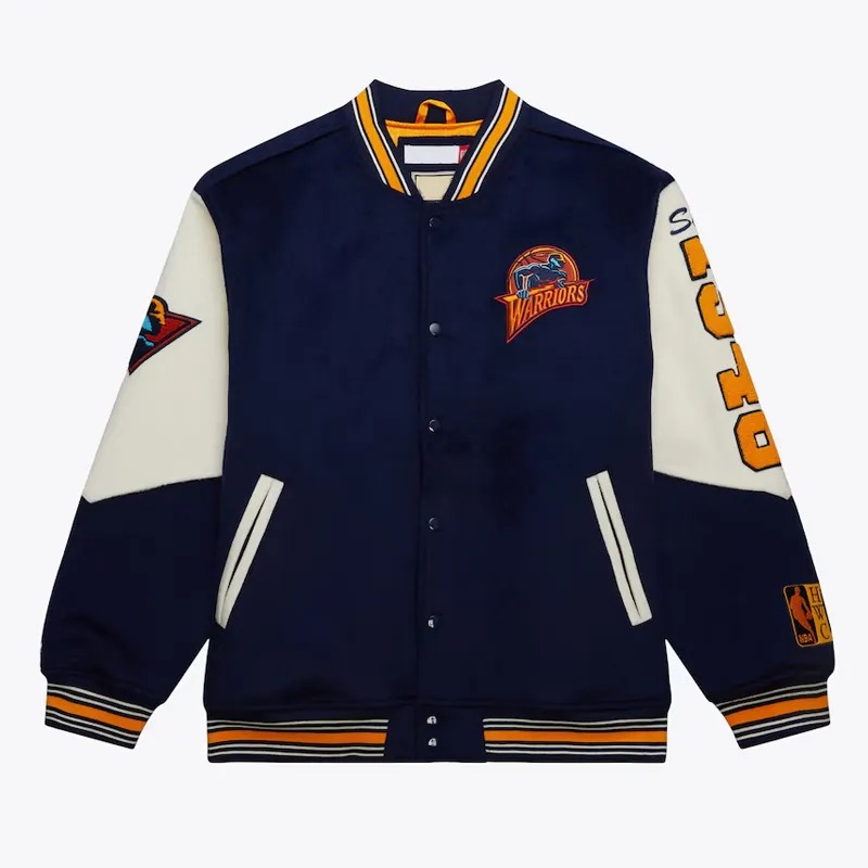 The Golden State Warriors Team History Navy Vintage Logo Varsity Jacket honors one of basketball’s most iconic teams through its timeless design. Crafted with a deep navy base and classic varsity aesthetics, it proudly displays the Warriors’ historic logos that symbolize their journey from past triumphs to modern greatness. Perfect for die-hard fans, sports collectors, and anyone who appreciates vintage sportswear, this jacket blends nostalgia with streetwear flair — celebrating Golden State pride in every stitch.