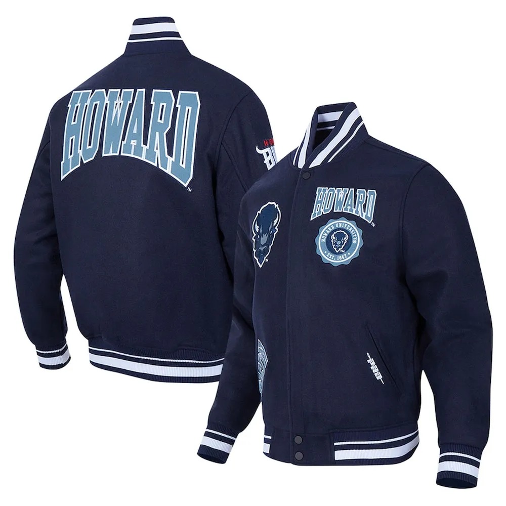 Howard Bison Crest Navy Varsity Wool Jacket
