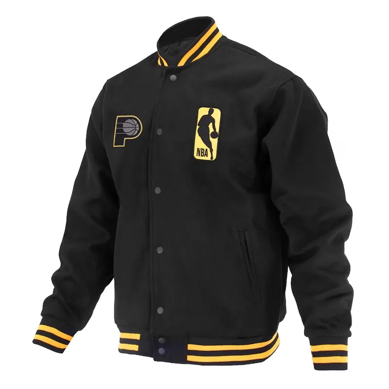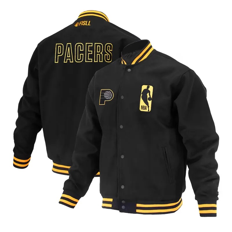 The Indiana Pacers Logoman Shadow Black Varsity Jacket is a tribute to NBA heritage and team spirit. Rooted in the iconic tradition of varsity jackets, it connects basketball fans to the long-standing culture of pride, loyalty, and style. With the Indiana Pacers’ legacy woven into its design, this jacket is more than apparel – it’s a symbol of dedication to the game and a timeless piece of American sports fashion.