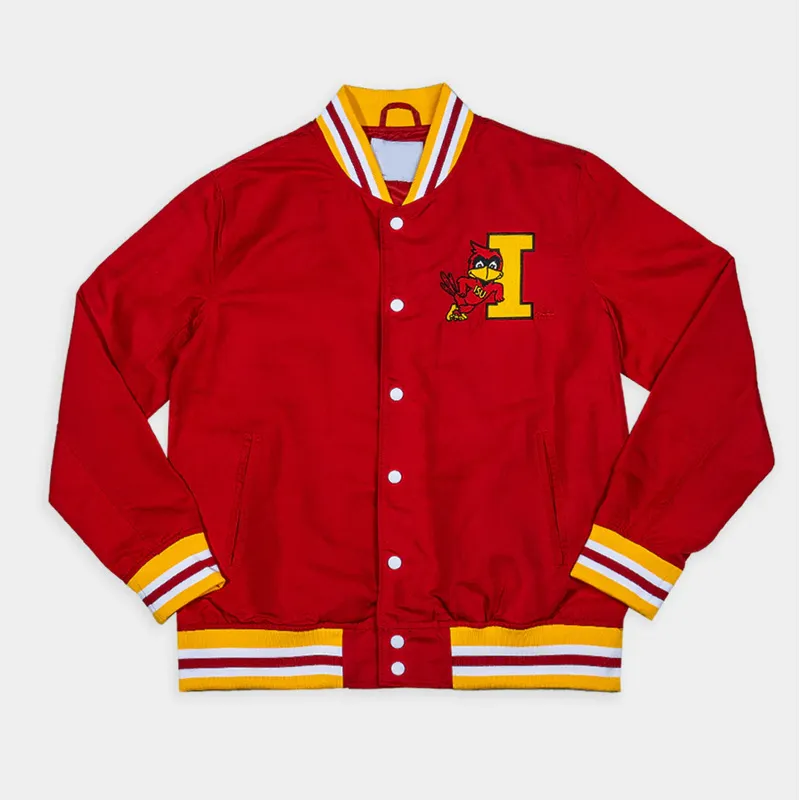 The Iowa State Cyclones Leaning Cy Bomber Jacket combines bold collegiate style with the proud legacy of Iowa State University athletics. Featuring the iconic Leaning Cy logo, this jacket celebrates Cyclones spirit and school pride, making it perfect for students, alumni, and fans alike. Ideal for game days, campus events, or casual outings, the Iowa State Cyclones Leaning Cy Bomber Jacket offers a timeless NCAA-inspired look that blends tradition, comfort, and modern fashion—an essential piece for any devoted Cyclones supporter.