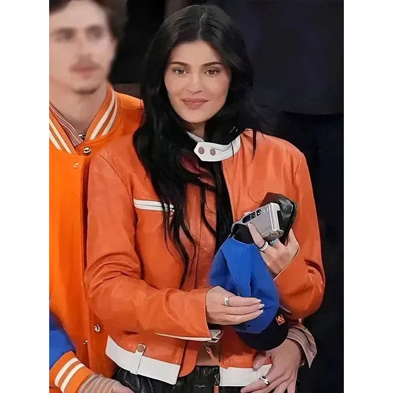 The Knicks Game Kylie Jenner MSG Leather Jacket recreates the standout style worn by the celebrity at a memorable New York Knicks game. This jacket captures the chic, high-fashion aesthetic of her courtside look, blending luxury with casual sportiness. Perfect for fashion enthusiasts, basketball fans, or those inspired by celebrity trends, it offers a bold statement piece that merges athletic culture with designer flair. Embrace the glamour of MSG and celebrity influence with this iconic jacket.