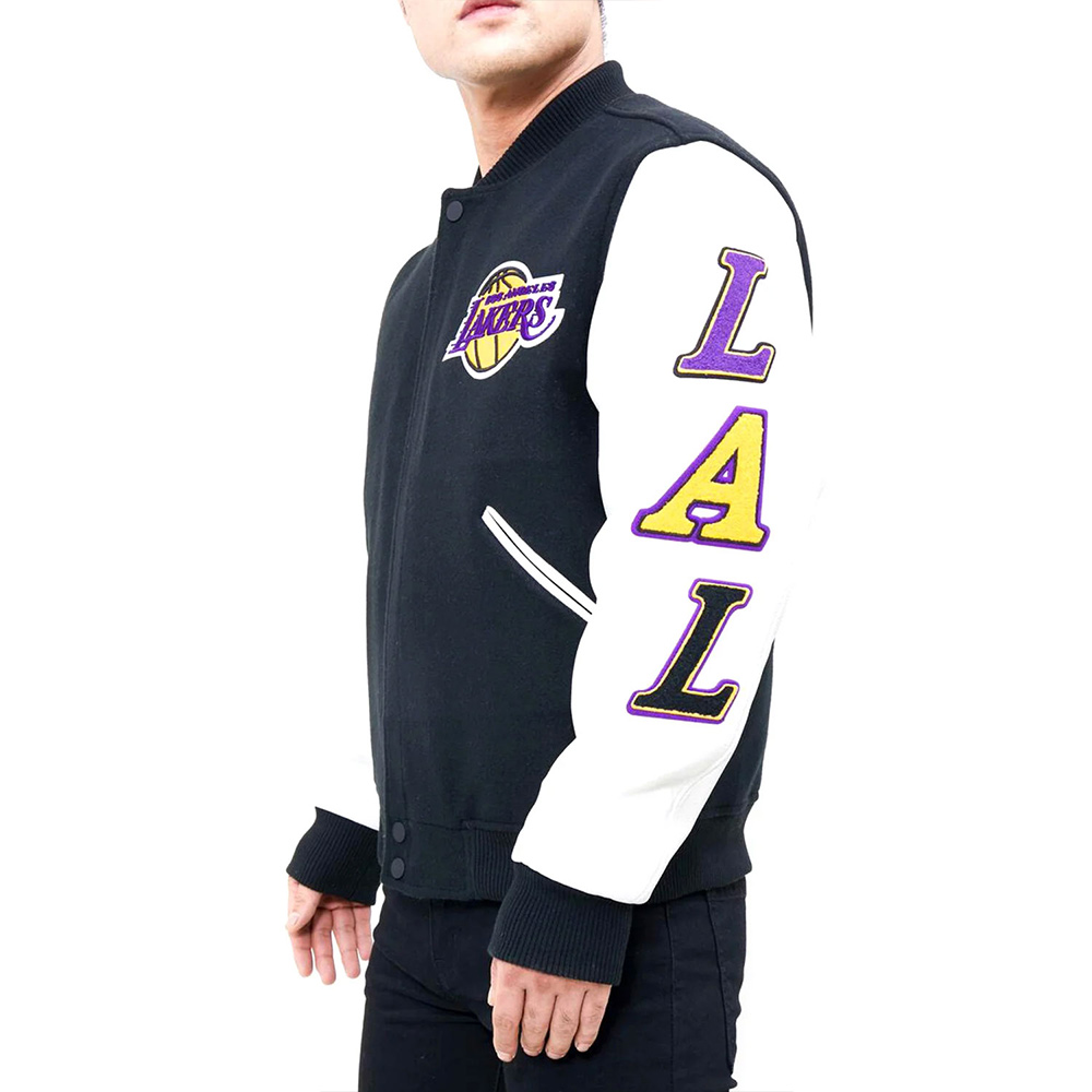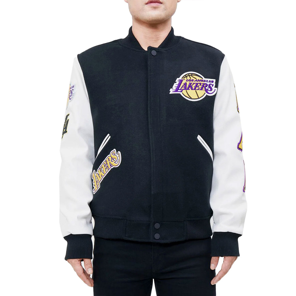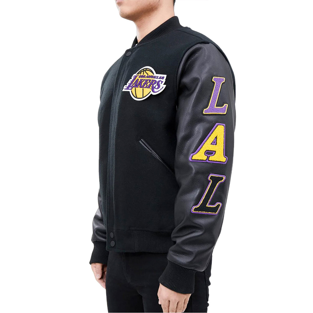 Los Angeles Lakers Logo Blended Wool/Leather Varsity Full-Snap Jacket