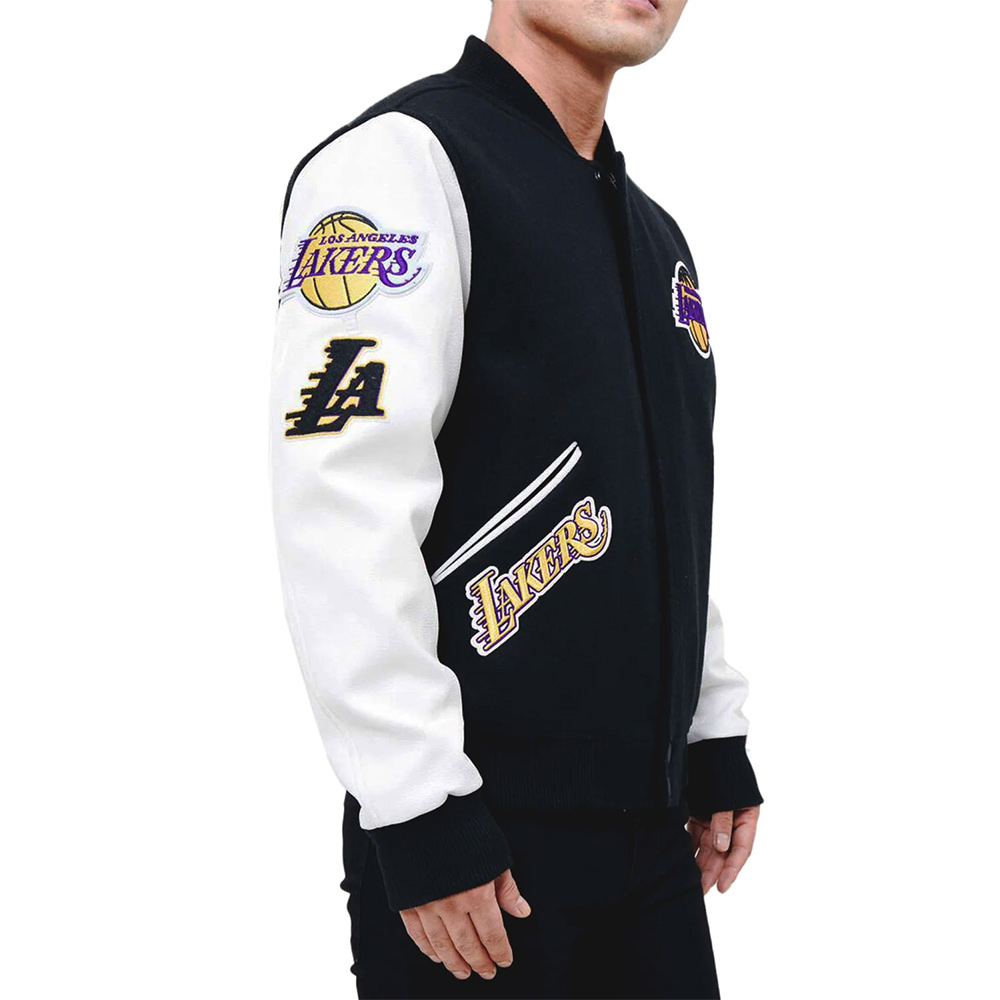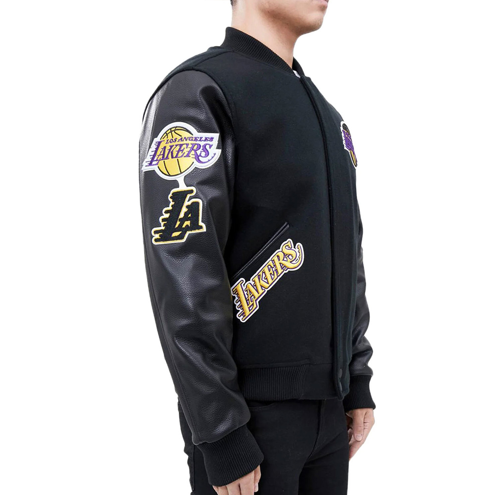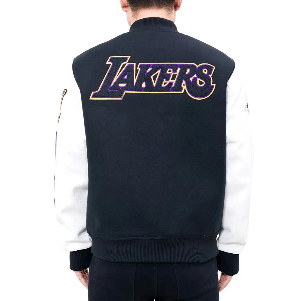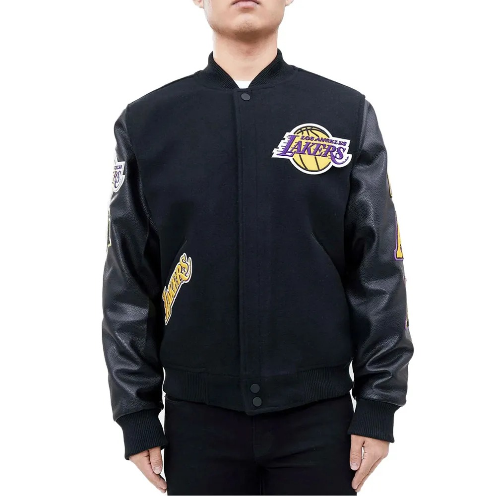 Los Angeles Lakers Logo Blended Wool/Leather Varsity Full-Snap Jacket