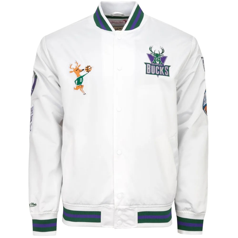 Milwaukee Bucks City Collection White Varsity Satin Jacket