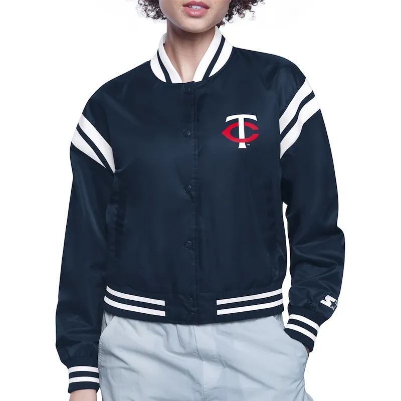 The Minnesota Twins Printed Logo Varsity Satin Jacket captures the spirit of classic baseball culture and team pride. Designed for true Twins fans, it reflects the heritage and energy of Minneapolis baseball through its bold printed logo and premium satin finish. Perfect for collectors and everyday supporters alike, this jacket stands as a stylish tribute to MLB history, uniting timeless sports nostalgia with modern streetwear appeal.
