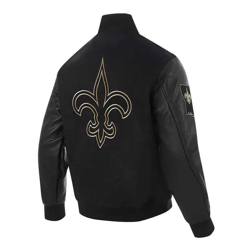 The New Orleans Saints Full-Zip Black Varsity Jacket pays homage to one of the NFL’s most iconic franchises. Designed with classic varsity styling, this jacket represents decades of Saints history, uniting fans who take pride in their team’s journey. More than just outerwear, it stands as a symbol of loyalty, tradition, and the vibrant spirit of New Orleans football.