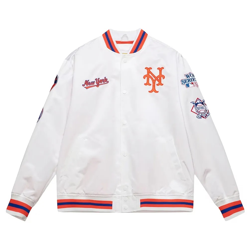 New York Mets City Collection Varsity White Satin Full-Snap Jacket
