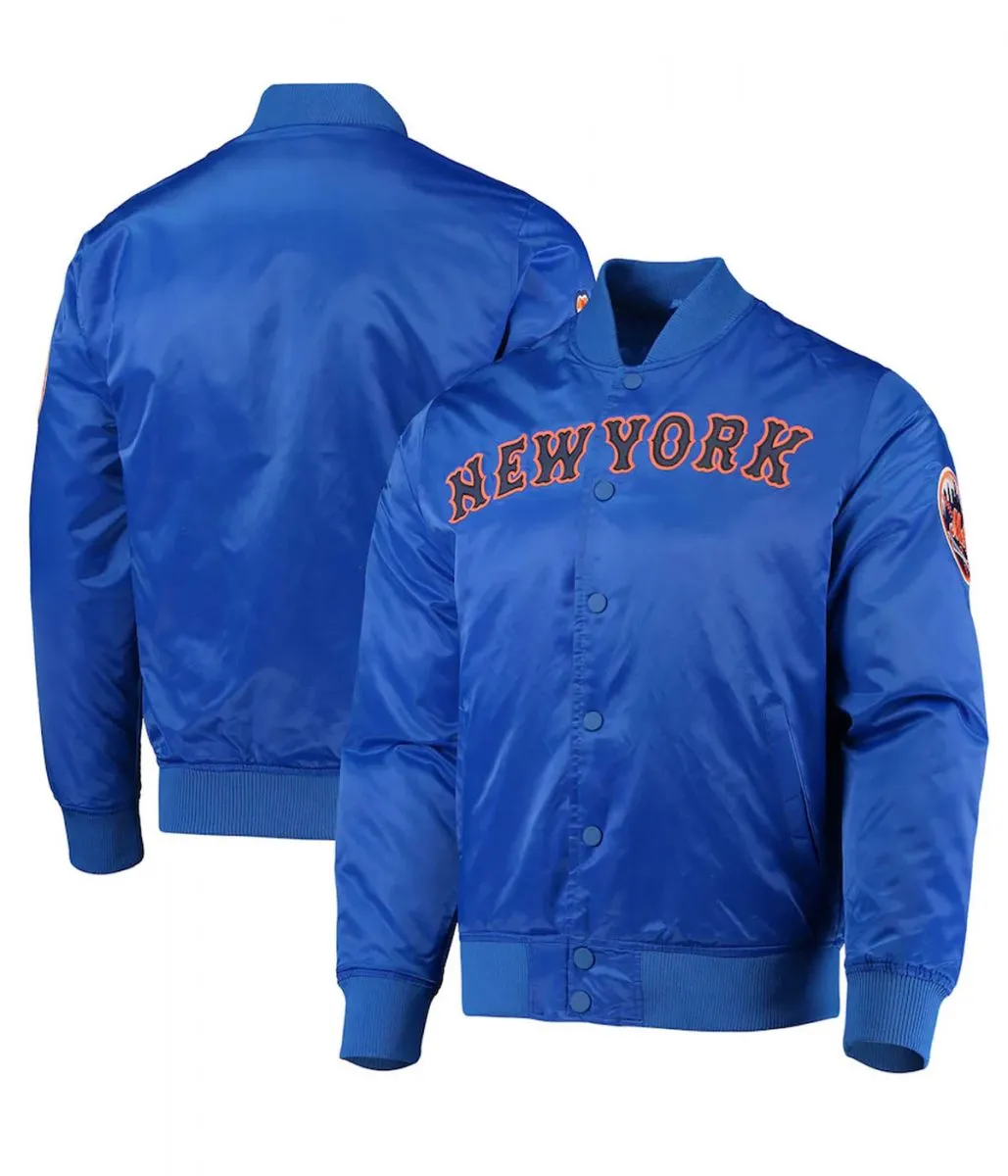 New York Mets Full-Snap Royal Blue Satin Jacket