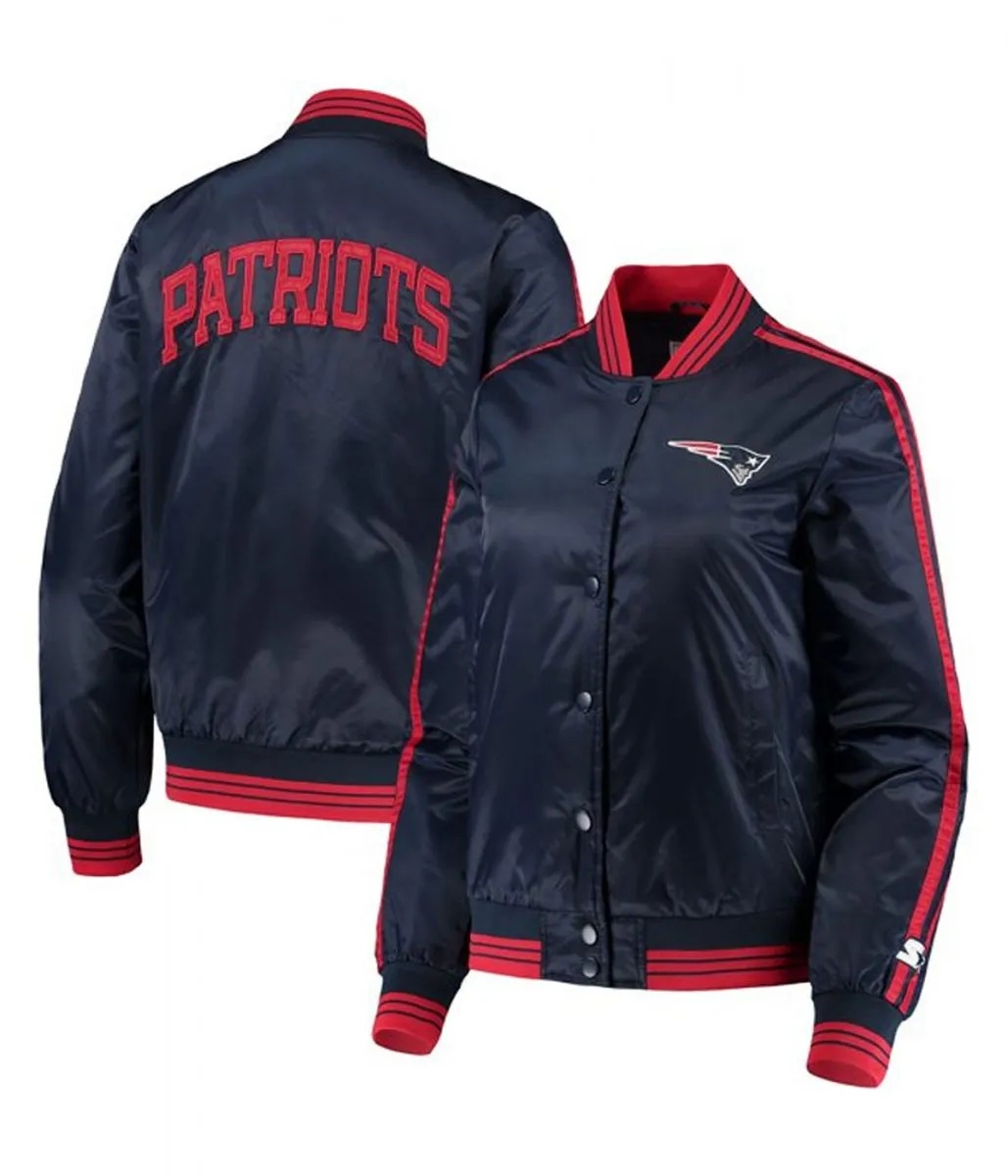 Overtime New England Patriots Full-Snap Navy Varsity Satin Jacket