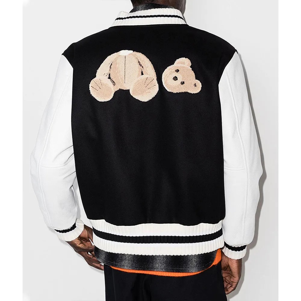 Tags: 50 Bear Jacket, black and white jacket, designer jacket, Iconic Jacket, Luxury Streetwear, Palm Angels, streetwear, Trendy Jacket, urban fashion, varsity jacket