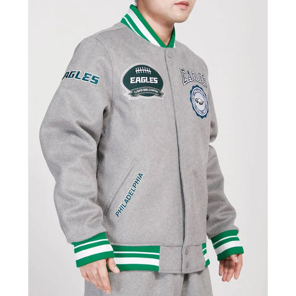 Philadelphia Eagles Heather Grey Varsity Wool Jacket