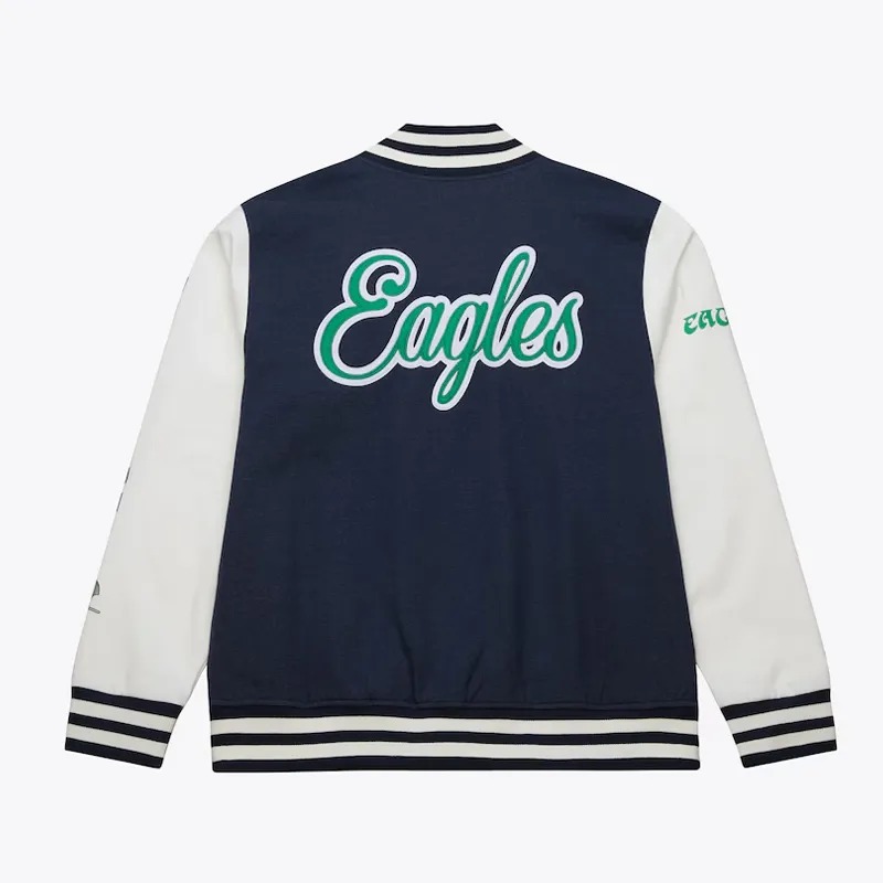 The Philadelphia Eagles Navy and White Fleece Varsity Jacket is more than fanwear—it’s a nod to classic American varsity culture and the proud history of the Eagles franchise. Designed in bold navy and crisp white, this jacket captures the essence of team pride while honoring the tradition of varsity athletics. Whether worn to the stadium or as a statement piece, it reflects both heritage and loyalty, making it a must-have for passionate Philadelphia fans.