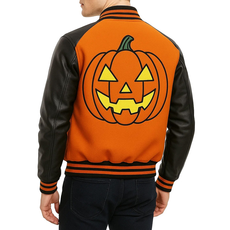The Pumpkin Crew Black and Orange Varsity Jacket is a timeless representation of varsity fashion with a bold twist. Inspired by heritage athletic wear, it combines the striking colors of black and orange to create a standout look. More than just outerwear, the Pumpkin Crew Black and Orange Varsity Jacket reflects individuality, team spirit, and modern streetwear culture. Designed for those who appreciate tradition while embracing bold style, this jacket is perfect for fans and fashion enthusiasts alike.