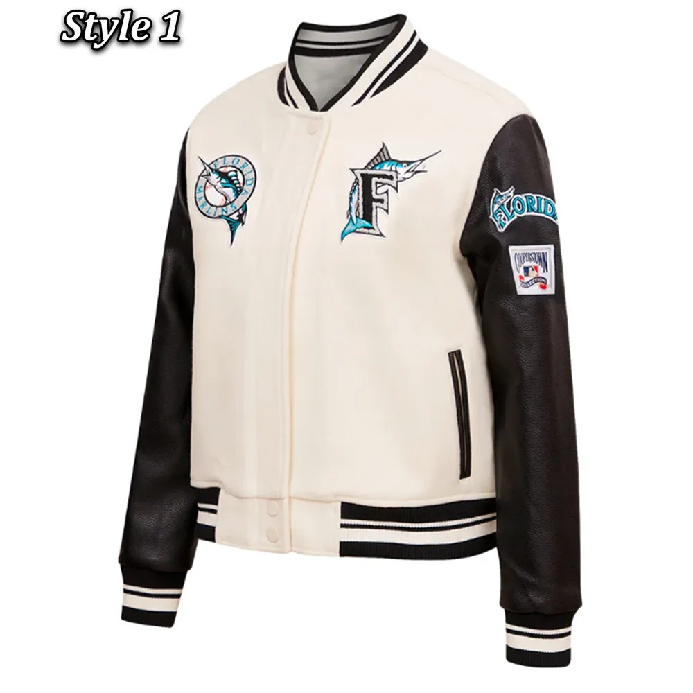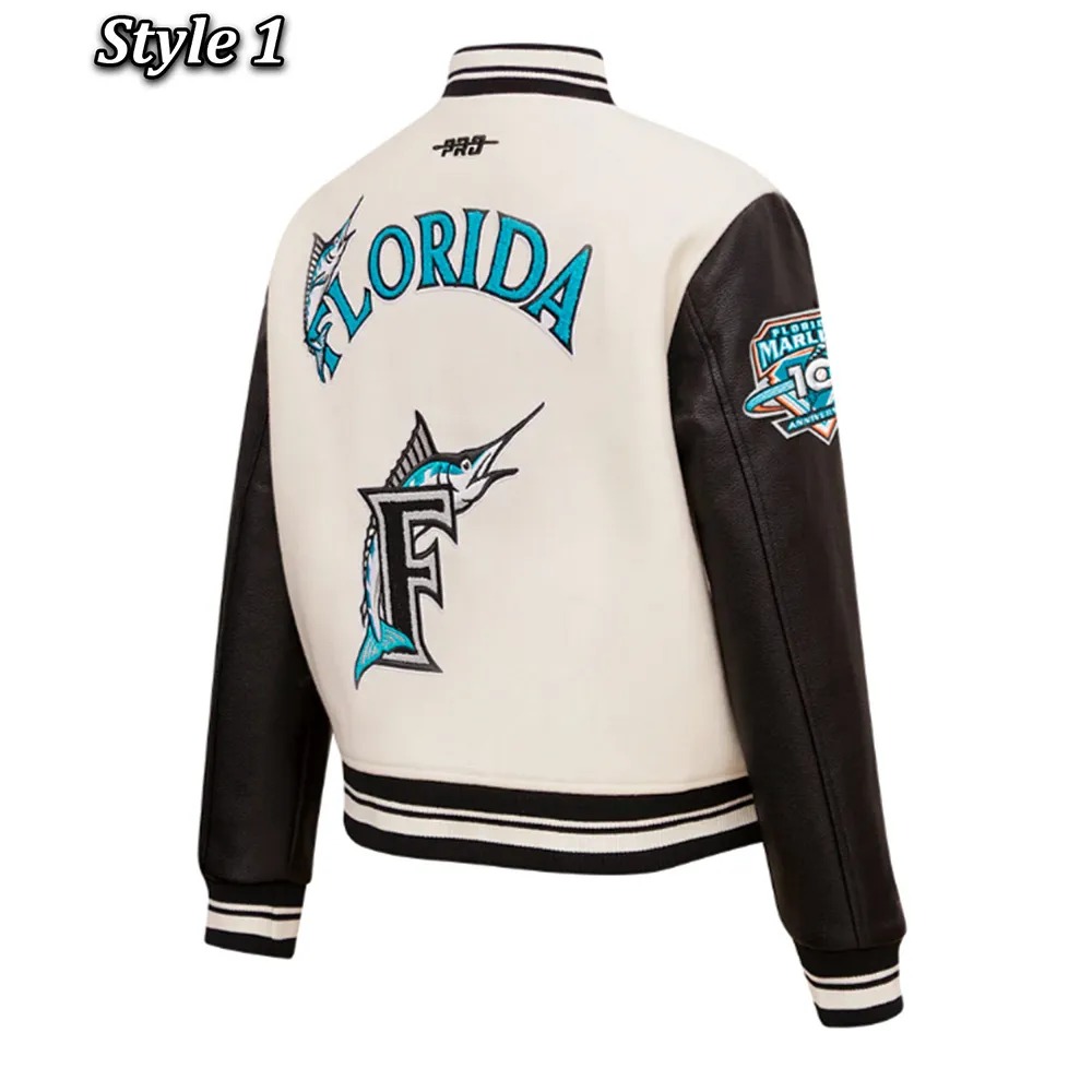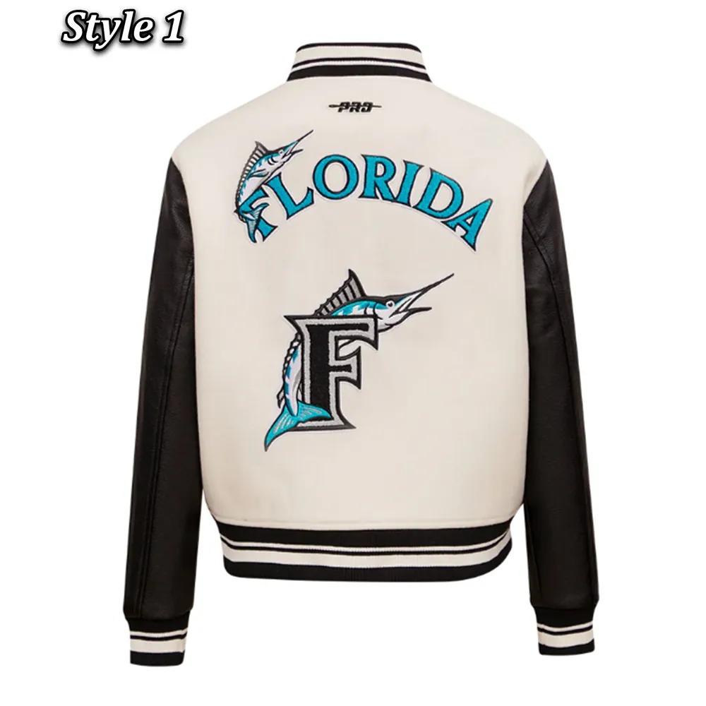 The Retro Classic Rib Florida Marlins Varsity Jacket celebrates the rich history of the Marlins and the timeless appeal of varsity jackets. With its iconic ribbed design and classic silhouette, this jacket pays homage to baseball culture while offering a vintage aesthetic that resonates with fans and fashion lovers alike. Ideal for casual wear, memorabilia collection, or showing off team pride, it’s more than a jacket—it’s a piece of sports history.