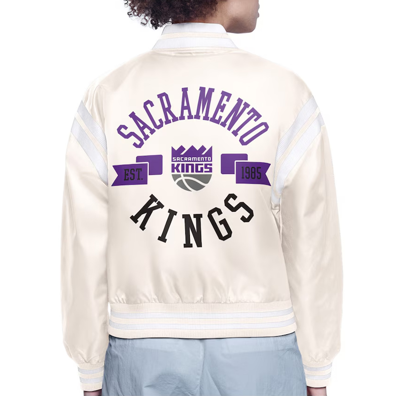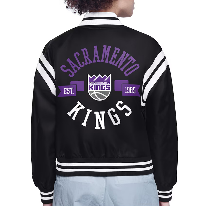 The Sacramento Kings Printed Logo Varsity Satin Jacket celebrates the history and achievements of one of the NBA’s most iconic teams. Designed for fans and collectors, it honors the Kings’ memorable moments and contributions to basketball culture. Combining classic inspiration with modern style, the Sacramento Kings Printed Logo Varsity Satin Jacket is perfect for showcasing team pride while reflecting Sacramento’s basketball legacy. Wearing this jacket connects fans to the spirit of Kings history and the excitement of professional basketball.