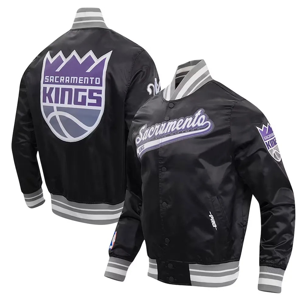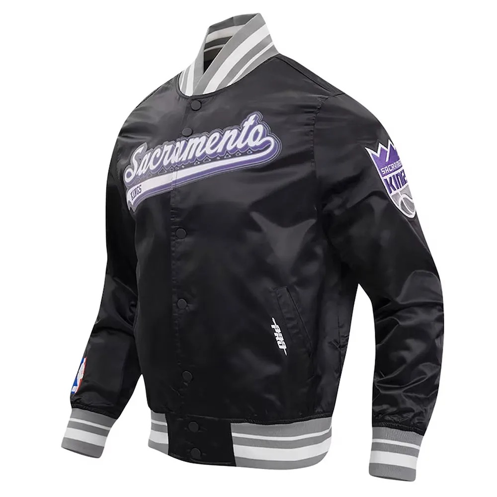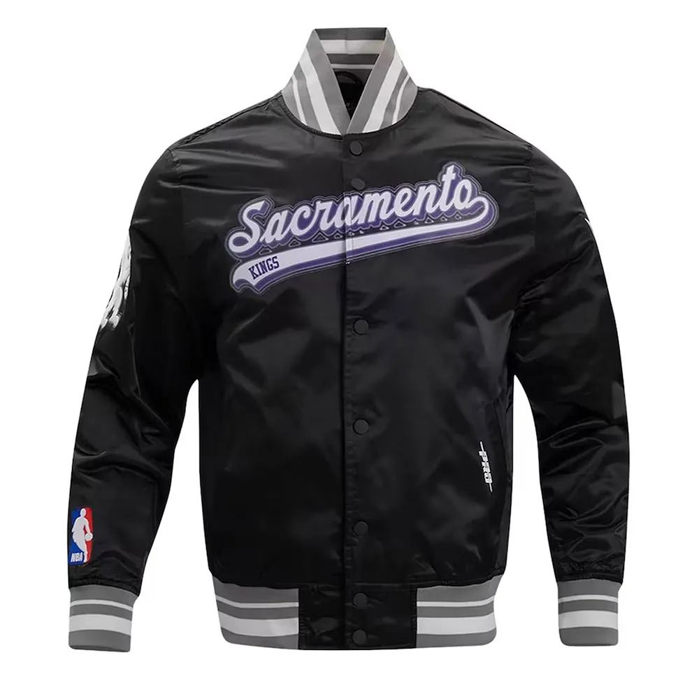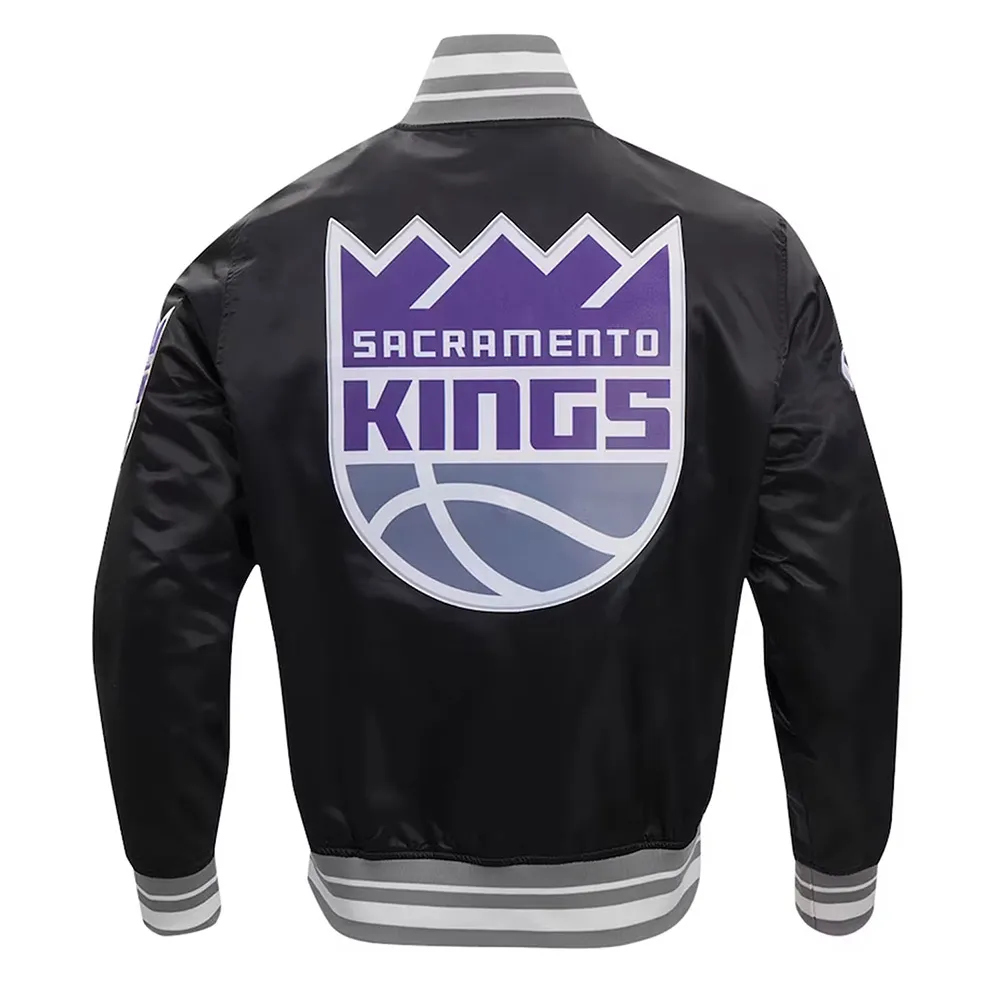 Sacramento Kings Script Tail Black Varsity Satin Jacket