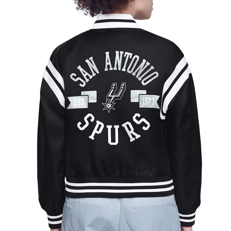The San Antonio Spurs Printed Logo Varsity Satin Jacket celebrates the history and achievements of one of the NBA’s most successful franchises. Designed for fans and collectors, it honors the Spurs’ memorable moments and contributions to basketball culture. Combining classic inspiration with modern style, the San Antonio Spurs Printed Logo Varsity Satin Jacket is perfect for showcasing team pride while reflecting San Antonio’s basketball legacy. Wearing this jacket connects fans to the spirit of Spurs history and the excitement of professional basketball.