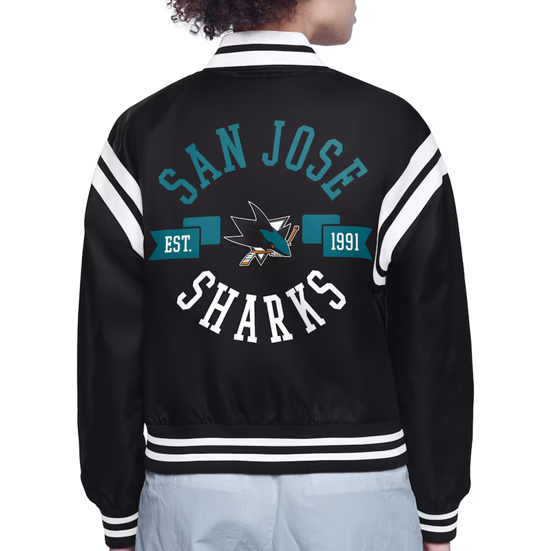 San Jose Sharks Printed Logo Varsity Satin Jacket