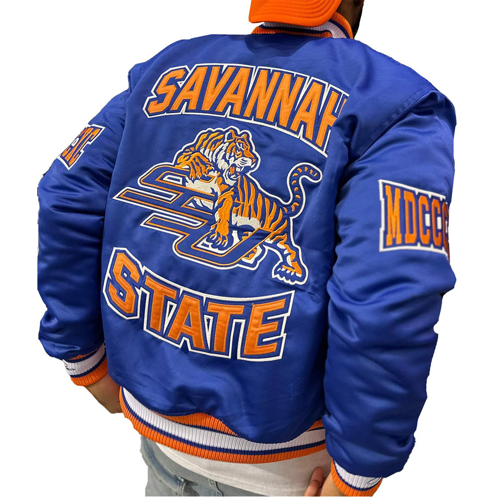 The Savannah State University Royal Satin Jacket blends classic collegiate style with the proud history of SSU. Designed in a striking royal tone symbolic of the university’s spirit, this piece channels decades of campus tradition and athletic pride. Ideal for alumni, students, or fans of retro collegiate fashion, the Savannah State University Royal Satin Jacket offers a nostalgic connection to Savannah State’s legacy while delivering a timeless look inspired by historic university outerwear.