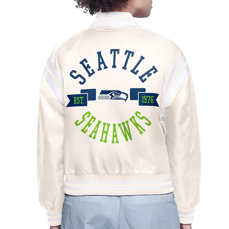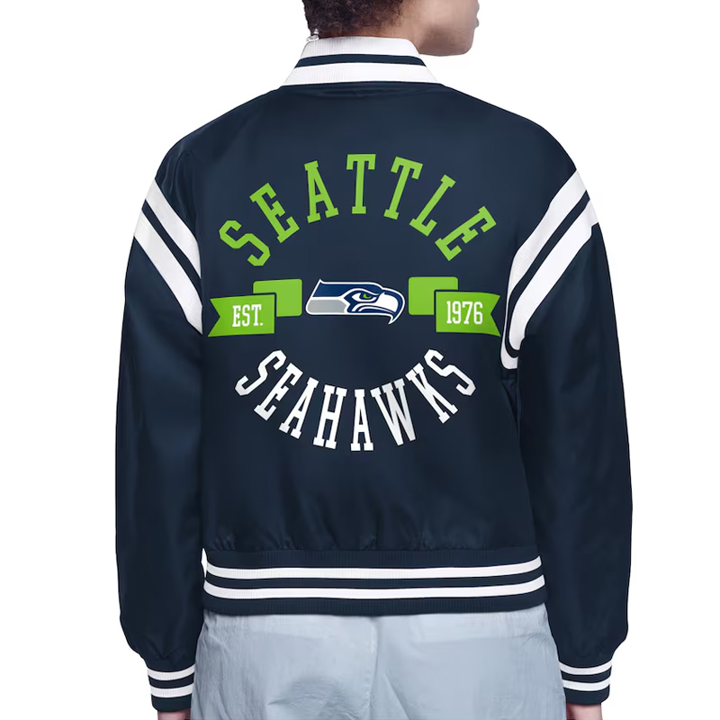 Seattle Seahawks Printed Logo Varsity Satin Jacket