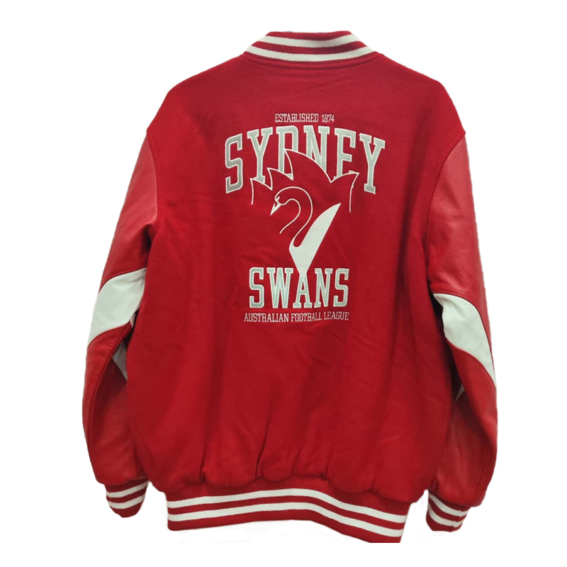 The Sydney Swans Red Full-Snap Varsity Jacket is a timeless celebration of the AFL club’s proud heritage and loyal fan community. Featuring the team’s bold red design, it embodies passion, unity, and tradition, making it a true symbol of the Swans’ enduring legacy. Perfect for game days, casual wear, or collectors of AFL memorabilia, the Sydney Swans Red Full-Snap Varsity Jacket connects generations of supporters through classic varsity style and a deep appreciation for Sydney’s football history.