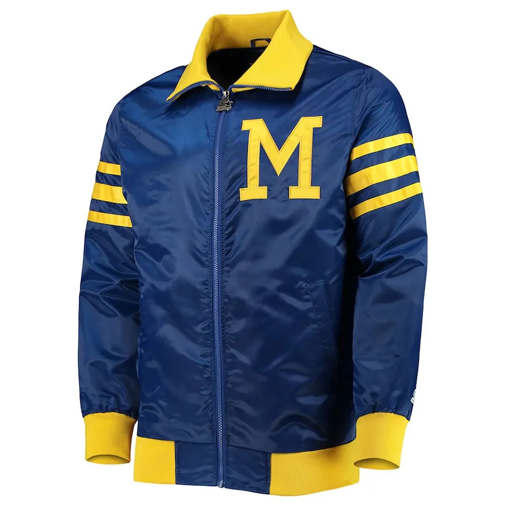 The Captain II Milwaukee Brewers Varsity Royal Satin Jacket